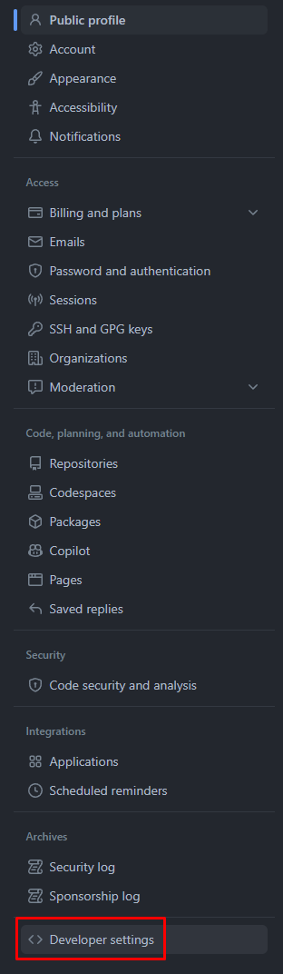 On the left, click 'Developer settings'