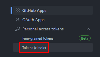 On the left, click 'Personal access tokens' and then 'Tokens (classic)'