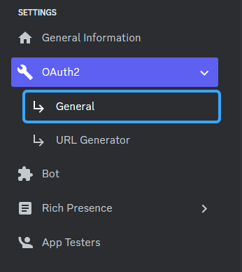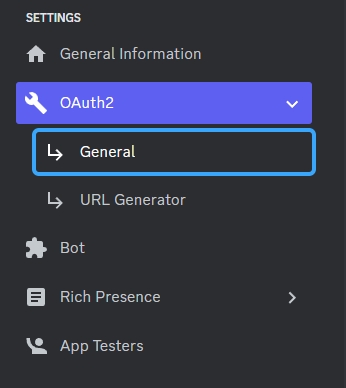To set up OAuth2, you need to set a few settings in your Discord Developer Portal. First, head to the Discord Developer Portal and select your modmail bot application. Then go to "OAuth2" and "General"