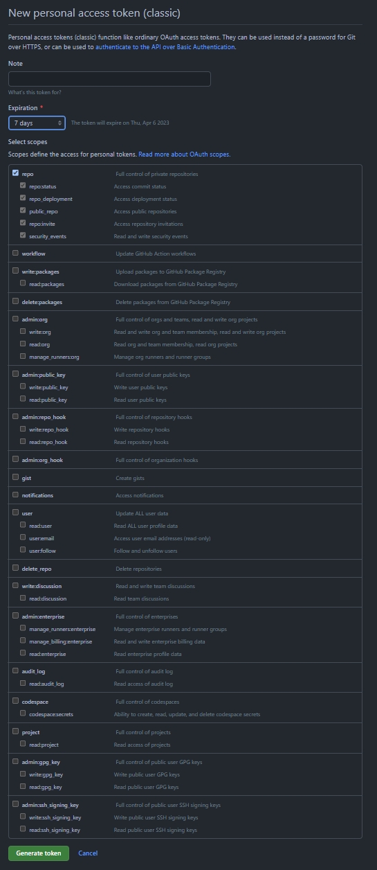 Give the token a name and select the 'repo' scope