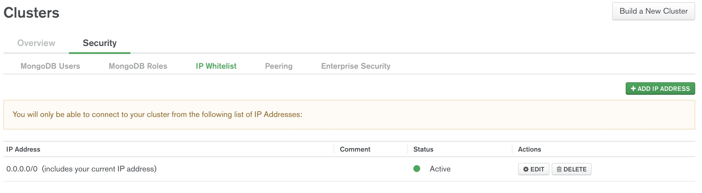 Your IP should look something like this, with 0.0.0.0/0: